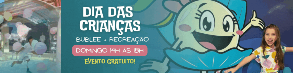 A diversão tá garantida com Bubble inflável, pintura de rosto e escultura de balões! E ainda tem muito mais pra aproveitar: cinema com lançamentos imperdíveis, brincadeiras na Mais 47, aventuras na World Games, magia no Parque Castelo do Aladin e muuuito maisss ✨