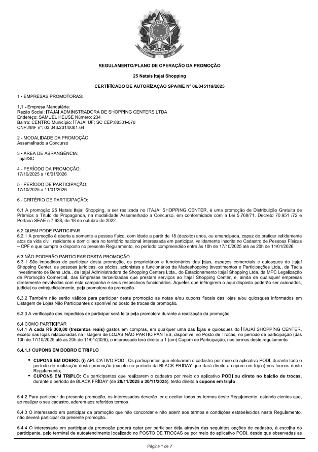 Regulamento Campanha 25 Natais | Itajaí Shopping
